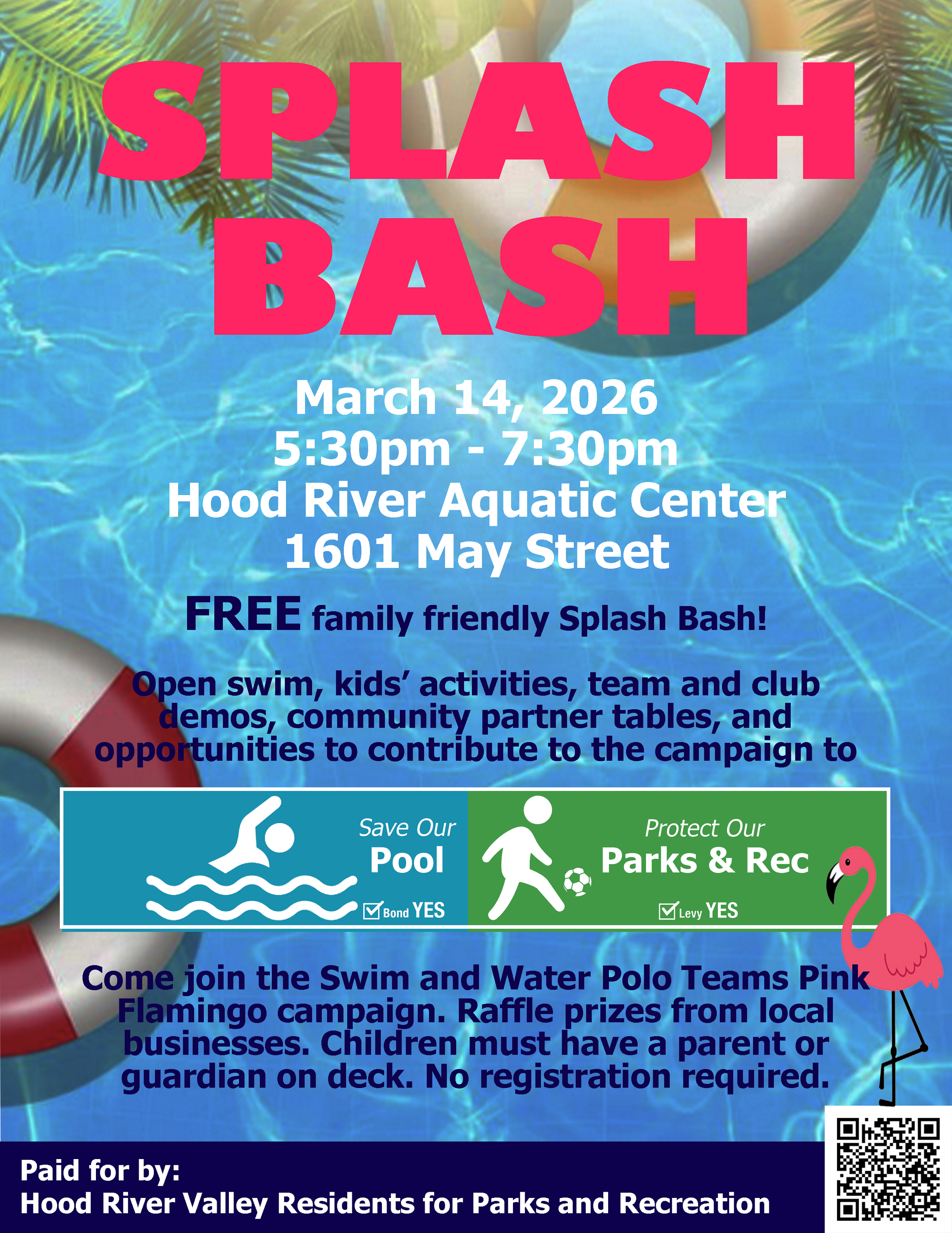 FREE Family friendly event. Open Swim, kid’s activities, team and club demos, community partner tables and opportunities to contribute to the campaign to Save our Pool and Protect Our Parks and Rec. Come join the Swim Team’s Pink Flamingo Campaign, check out pool concept designs, raffle and more!!! Children must have a parent or guardian on deck. No registration required.